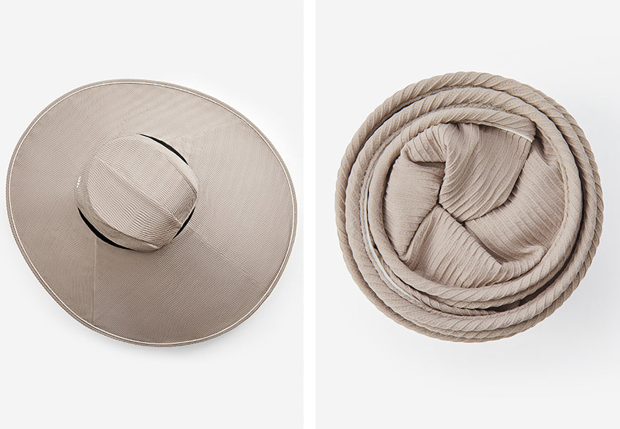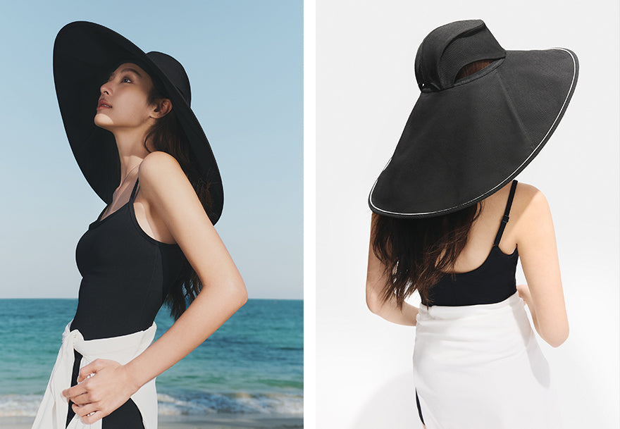 The 62 cm oversized brim features a wraparound umbrella shape that extends protection to the face, neck, and shoulders. It helps reduce direct sun exposure during long outdoor stays.