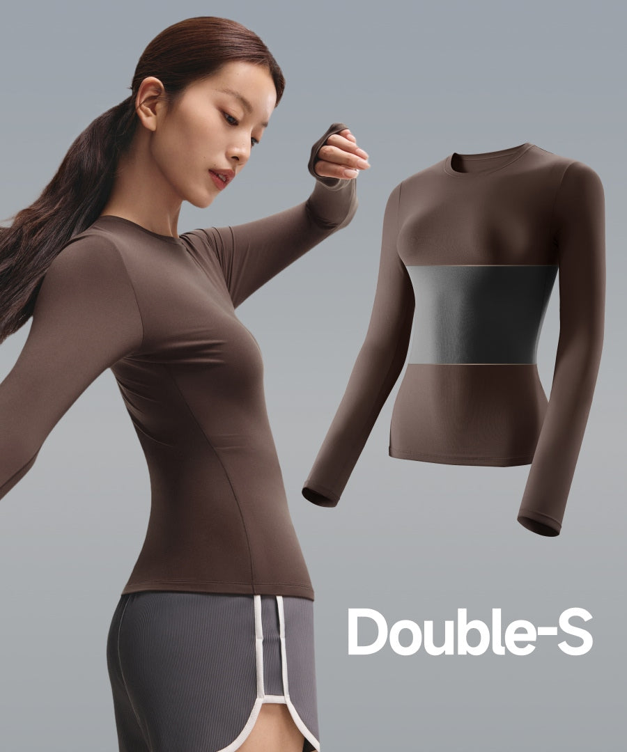 Double-S dual-layer system targets the waist—inner wrap provides firm yet comfortable hold, outer layer smooths for a streamlined look; chest-to-waist shaping enhances overall proportions.