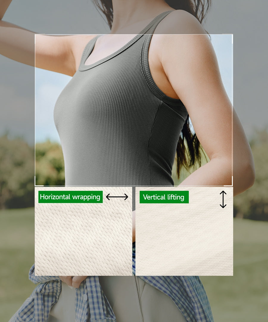 This all-season Bra-in tank top combines built-in support with effortless versatility, making it ideal for outdoor activities or daily wear. The high-elastic integrated banana-leaf cup resists sagging and movement, while breathable micro-perforations and ultra-soft modal fabric keep you cool and comfortable. With moisture-wicking lining and a figure-flattering ribbed design, it layers smoothly under jackets or stands out on its own.