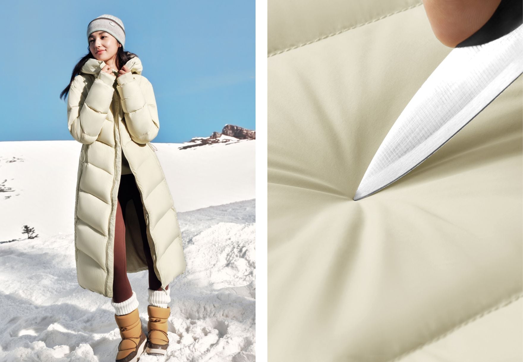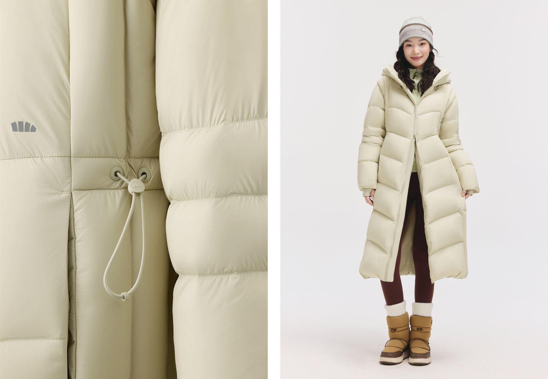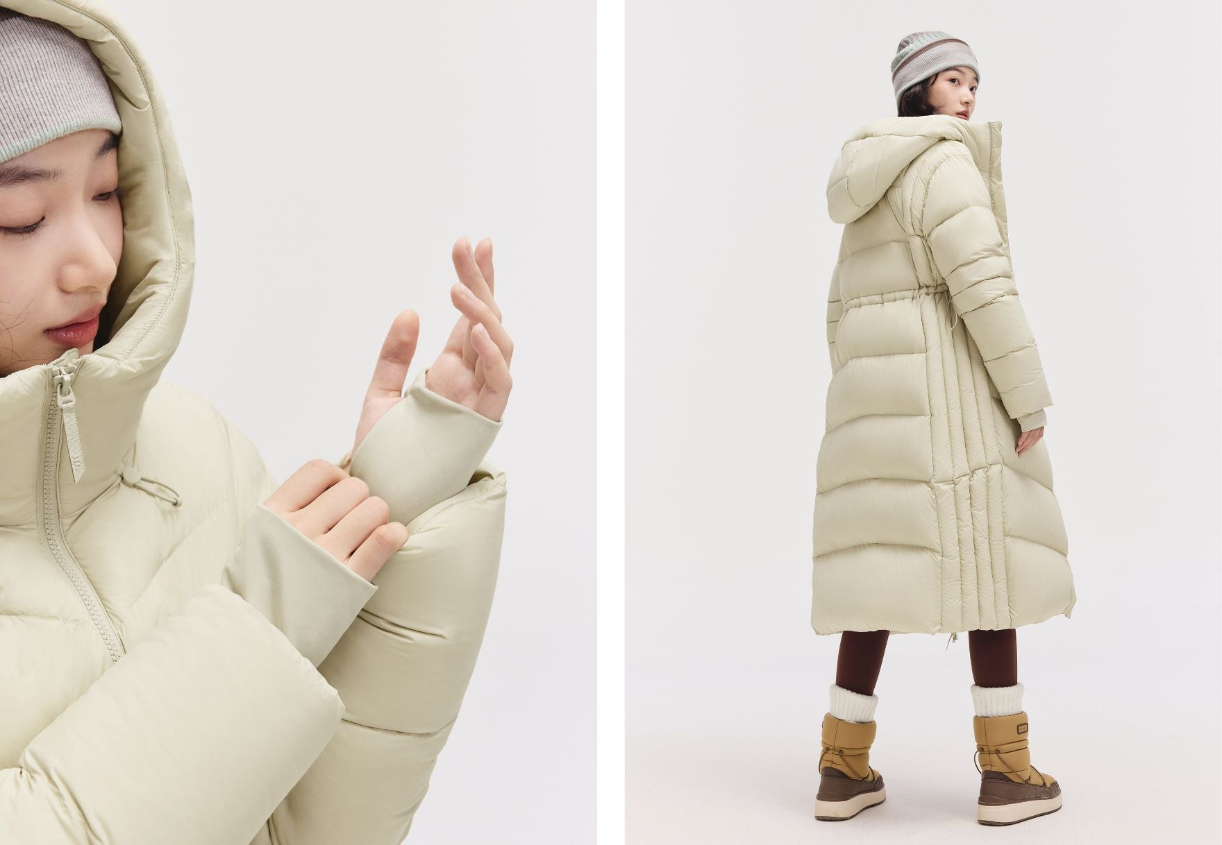 Designed for real winter life: a tall 11cm collar to shield the neck, adjustable waist for a fitted shape, and double storm cuffs to seal out cold winds. Every detail works to keep you warm and comfortable.