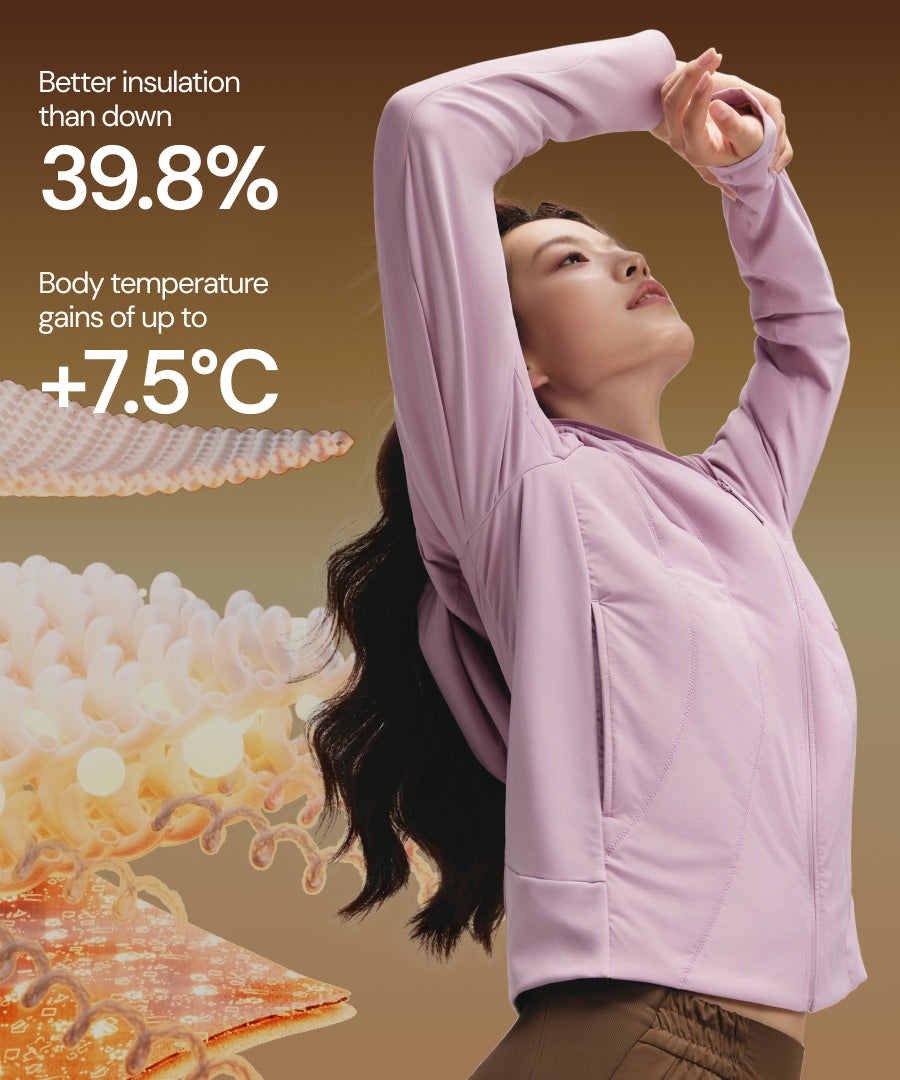 • Heat-storage insulation outperforms 800-fill down in warmth retention