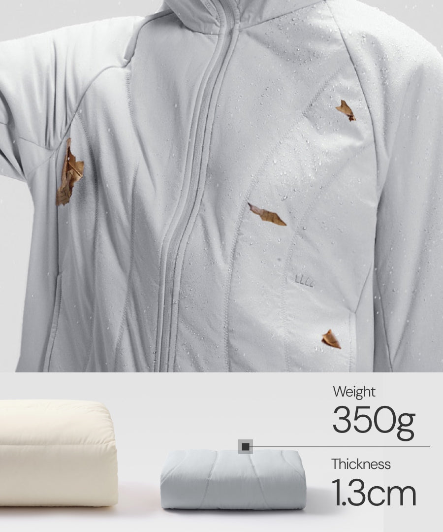 At just 350g with a slim 1.3cm profile, the jacket offers wind protection without bulk. Finished with WindGo fabric for rain resistance and machine-washable durability—warmth you can wear daily without the hassle.