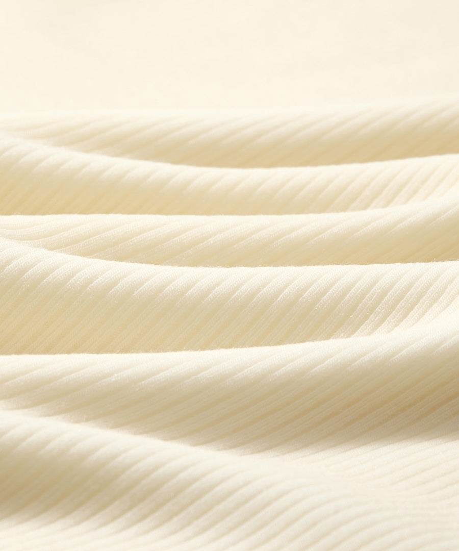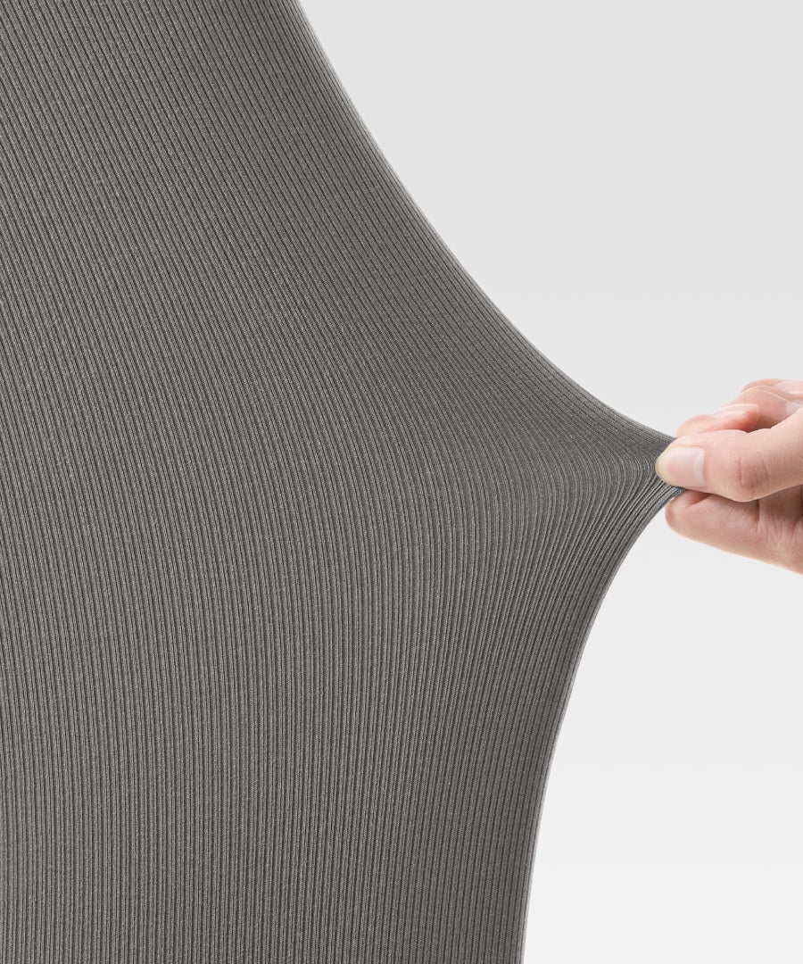 The 4.2% spandex blend with ribbed texture offers exceptional stretch and rebound, while thoughtful structural seams under the arms and hem enhance mobility and comfort.