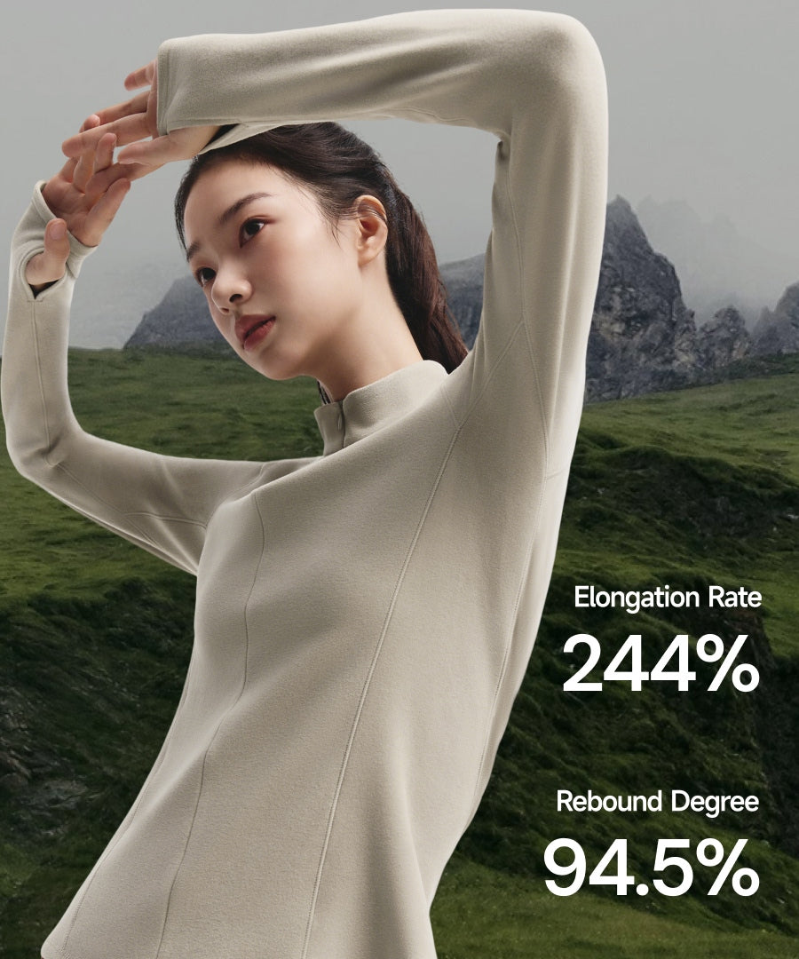 With 244% stretch and 94.5% recovery, the fabric adapts seamlessly to every move—whether stretching, bending, or lifting—ensuring total freedom without tightness.