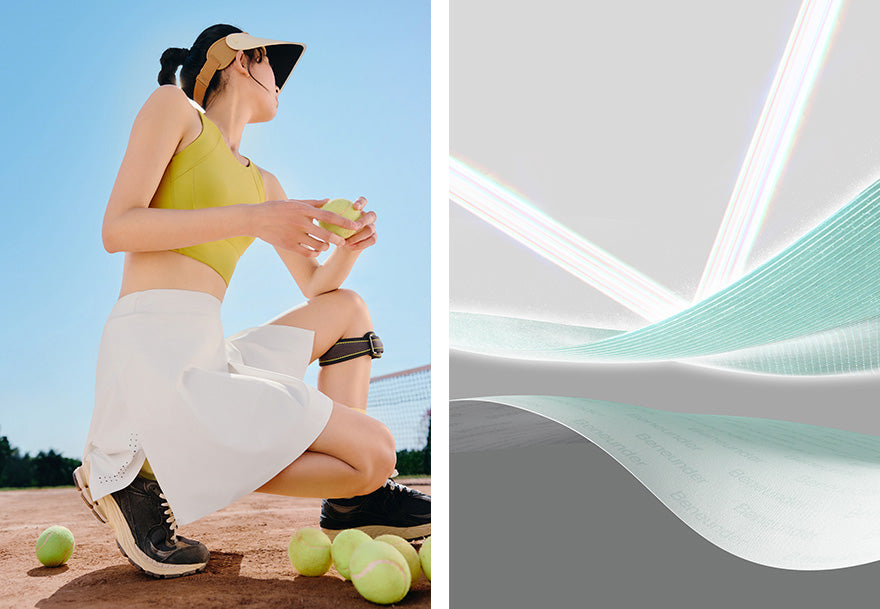 - Infused with TiO₂ UV-blocking particles that withstand sweat and washing.