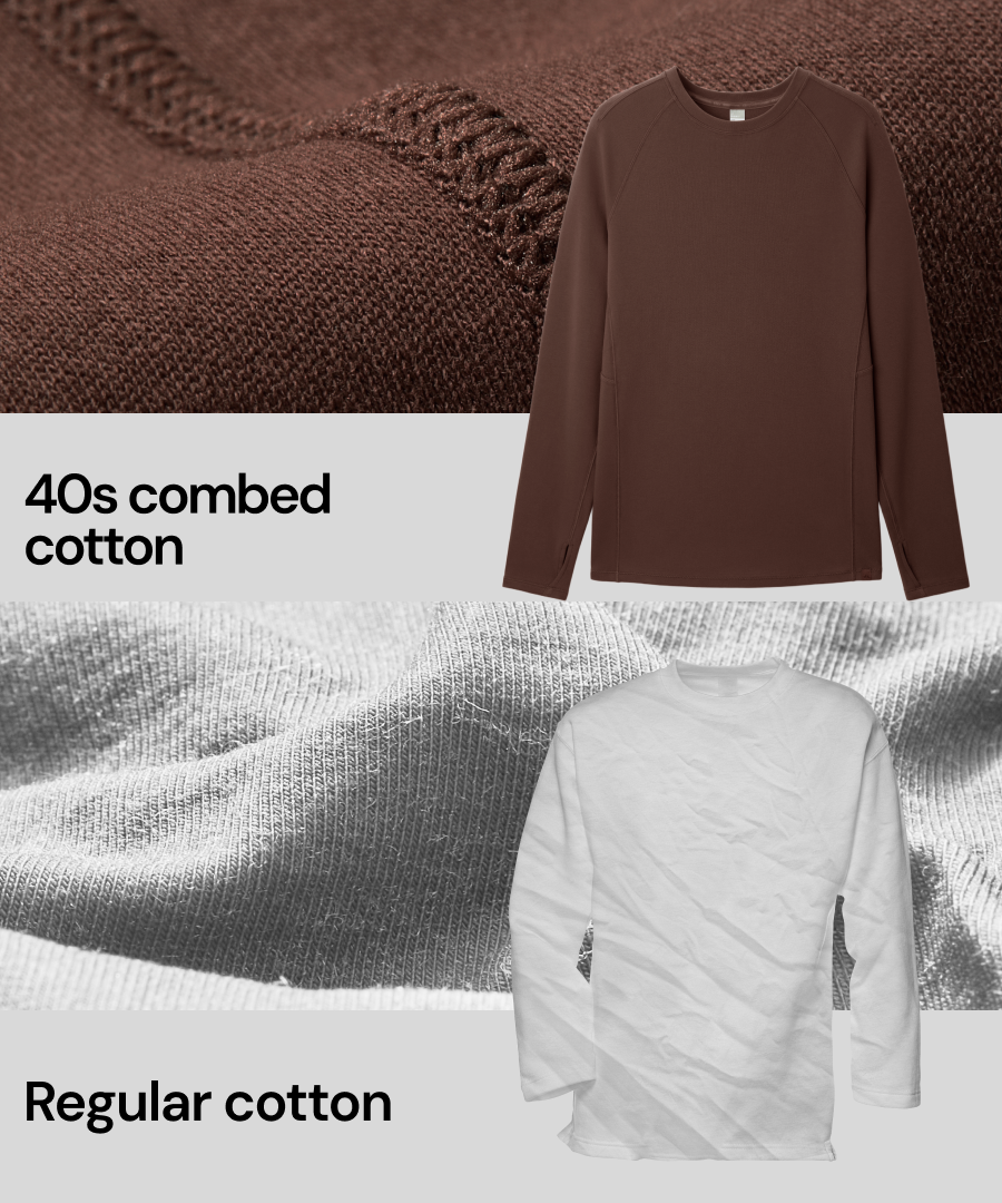 Soft yet structured, this memory cotton tee is made to keep its shape and comfort over time. With high elasticity, shape-retaining fabric, and two easy-to-wear silhouettes, it handles cool mornings and warm afternoons with ease. Designed for everyday ease—no stretching, no sagging, no stiff fabric, just a better long-sleeve.