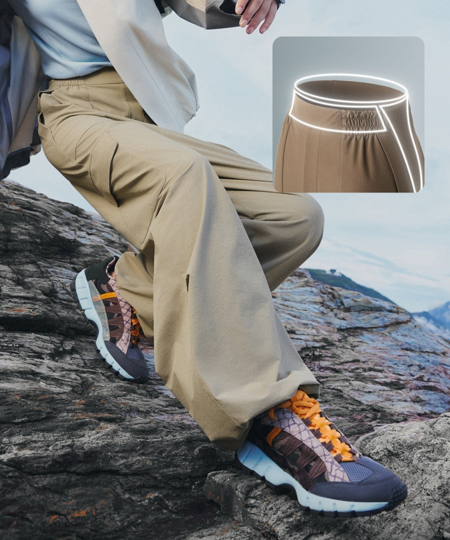 Strategic stretch zones at the waist and knees support dynamic movement—perfect for hikes, bike commutes, and everything in between.