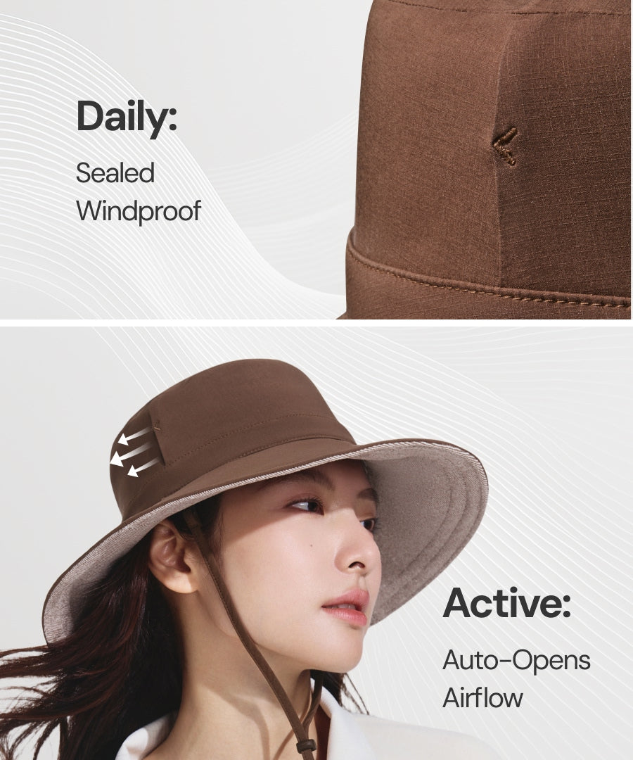 With dynamic side vents that adjust based on movement and posture, this hat stays breathable during activity and shields against wind while resting—no manual toggling needed.