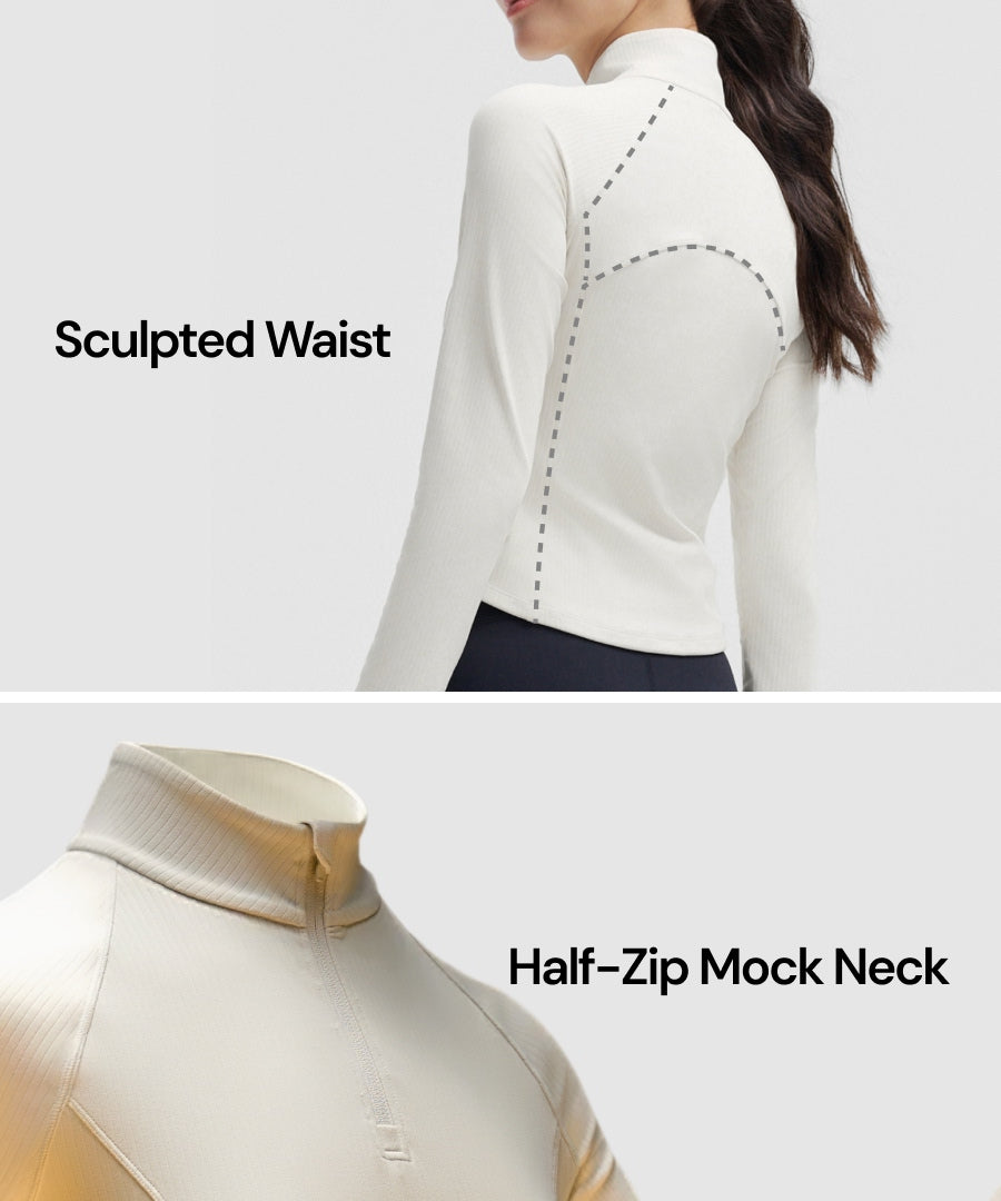 A sculpted waistline and half-zip mock neck design flatter your figure, offering both style and light protection from chill.