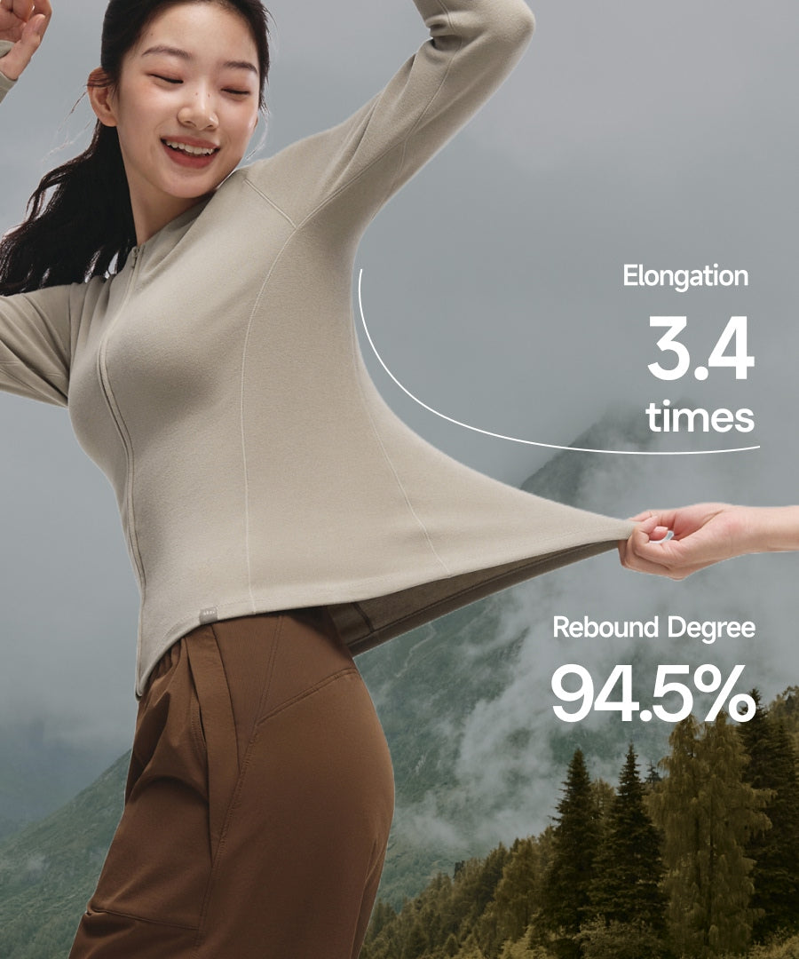 With 3.4× stretch and 94.5% rebound, the fabric adapts to every move. Stay flexible and unrestricted whether stretching, bending, or in active motion.
