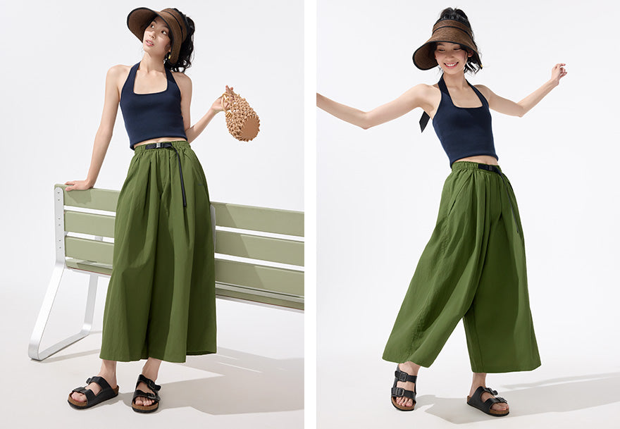 The Beneunder Women’s Water-Repellent Sunscreen Yamamoto Pants feature a wide-leg, relaxed fit, combining comfort and functionality. Crafted from cotton-like fabric, these pants are designed for casual outdoor adventures with the added benefit of water-repellent properties and sun protection, perfect for urban strolling and outdoor walks.