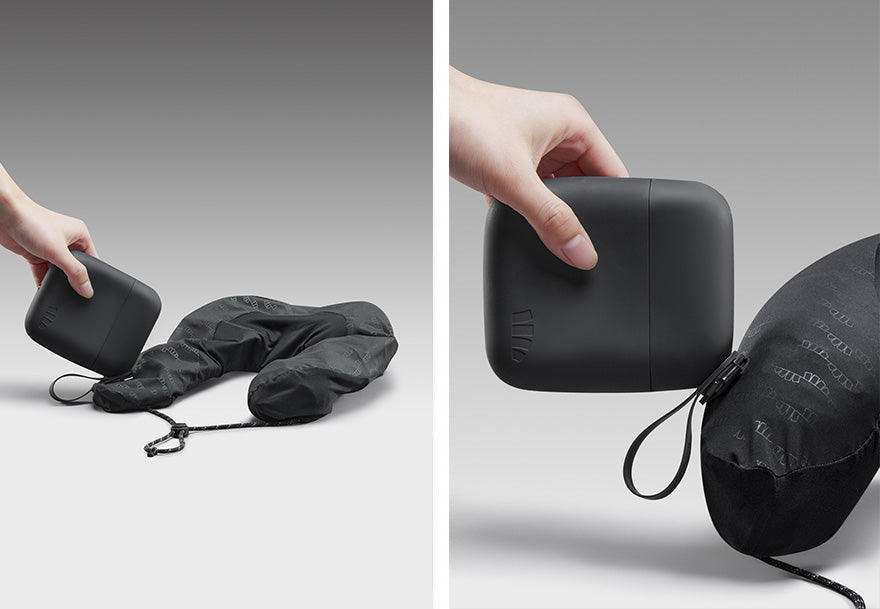 - Takes up 80% less space than traditional U-shaped pillows—fits in your pocket or clips onto your bag with ease.