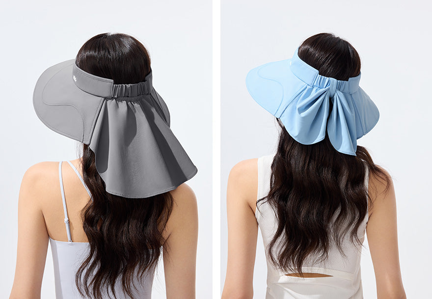- Soft, breathable neck flap shields the back of your neck and folds away neatly when not in use