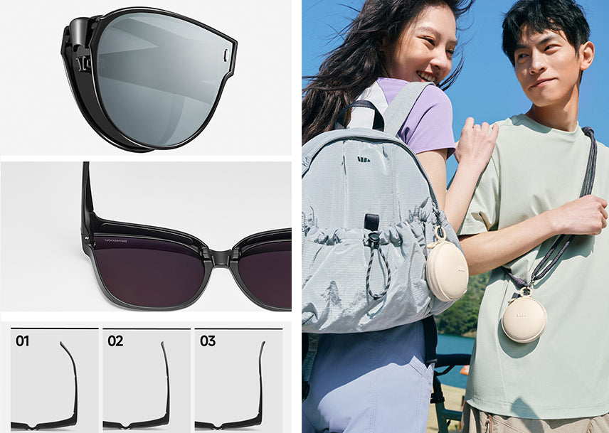 - 3D golden folding design maximizes space efficiency, hiding the temples when folded for a sleek, compact fit. Easily slips into your pocket or the included storage case.