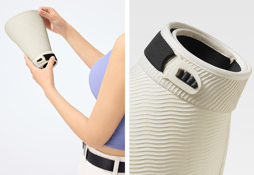 - Rolls easily into a compact shape, secured by a signature leaf buckle for on-the-go ease.